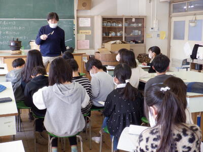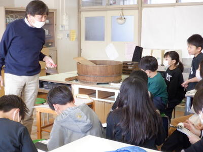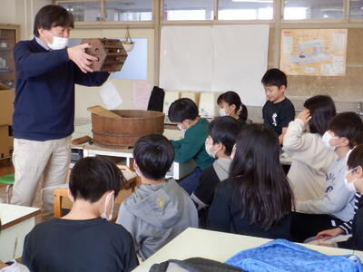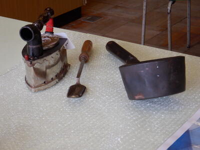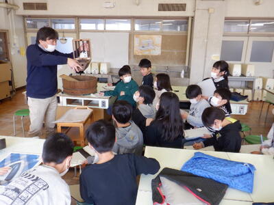 今日は、日野市郷土資料館の方に来ていただき、昔の生活の道具を見せていただきました。