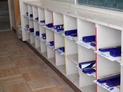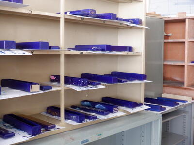 図工の準備室に入ると、たくさんの青紫色に塗られた細長い箱のようなものが目に入りました。
