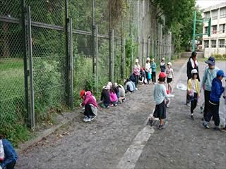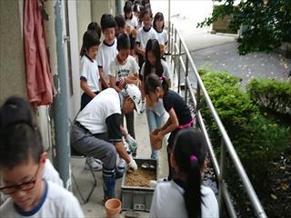 6月に田植えを行い、そこから約4か月。お世話になっている天野さんの田んぼには、立派な稲が育ち、たくさん実をつけていました。稲刈りの作業を初めて体験する子供たちですが、とてもきれいに刈り取ることができていて、天野さんも「今年はみんな刈り方がとても上手だね。」と褒めていただきました。刈り取った後は、干す作業も行いました。このあと脱穀作業が待っています。