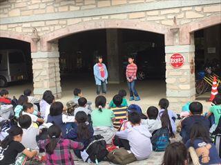いのちの学習の一環として、今日は「交通安全教室」を行いました。1年生も2年生も、日野警察の方のお話を真剣に話を聞いてました。その後、1年生は実際に横断歩道を渡る実地練習に出掛け、警察の方から、指導をしていただきました。「自分の命は自分で守る」体験ができ、とても良かったです。