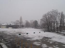 研究発表の日に見事にピンポイントで雪が降ってしまいました。午後にずれれば、少しくらいの雪だったら、といったわずかな期待もむなしいほどに、深々と雪が降り続いています。