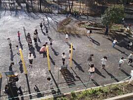 ちょうど陽が射していた中休みは、たくさんの子供たちが校庭で元気に遊んでいました。縄跳びやボール遊びをする子が多く見られました。