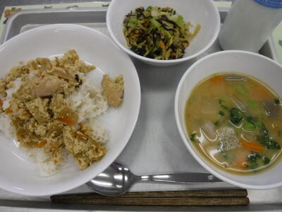 あぶたま丼 切り干し大根の和え物 大根呉汁 牛乳