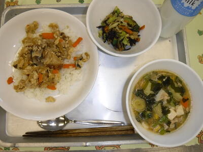 とよま丼 ひじきサラダ どさんこ汁 牛乳