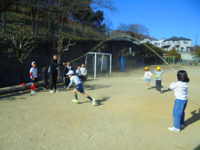 縄に入るタイミングや跳び方、掛け声などを工夫して練習に取り組んでいました。もう少し上達をしたら、目標の時間に何回跳ぶことができるかに取り組むクラスもあるとのことです。