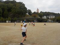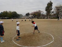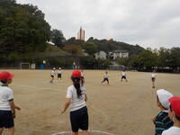 今回の時間では、ベースボールのルールを身に付けるために、攻撃側はバットは使わず、”バッターボックス”からボールを投げ、塁間を走る学習と、守備側は飛んできたボールを捕り、ランナーを次の塁に進ませない工夫を学習しました。