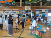 いよいよ展覧会本番となります。体育館が”ほぼ”アートの森になり、あと少しです。4年生や5年生は共同作品をよりよくしたいと最後まで、色を付けたり、新たなデザインをしています。本番切りキリまで自分たちの納得のいく作品にしようとがんばっている子供たちです。