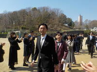 式後の送り出しでは、多くの保護者の方や地域の方、5年生にも見送られ、式の緊張感とは違う表情で巣立っていきました。中学校でのさらなる活躍、成長を期待しています。