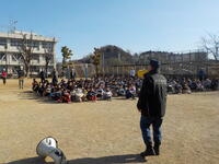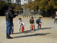 1月30日(金)に地震とその後の火災を想定した避難訓練を行いました。今回は日野消防署高幡出張所の方をお招きし、避難の様子をもとにした防災講話と消化器体験を実施しました。