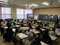 到着後はまず、学校の教室の様子を見学し、七生緑小の教室との違いをたくさん発見しました。中には天井の様子の違いにも着目するなど、よく比較し、観察していました。