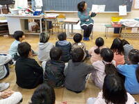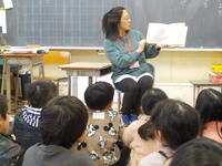 この日は2年1組の読み聞かせで、子供たちは絵本のファンタジーであたたかいお話の世界に引き込まれてお話を聞いていました。朝の一時のよい時間となっています。