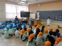 1年生では毎年この時期に、近隣の保育園、幼稚園の園児を招いての「ミニ学校」を行っています。1年生が園児に”学校ってこんなところ”と、入学前の園児に教えるという取り組みです。2月24日(火)からスタートし、今後も2回を行われる予定です。