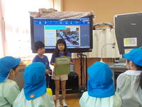 子供たちは3学期に入ってから準備を進めました。学校の1日の様子を紙芝居にしたり、オクリンクプラスというアプリにまとめ紹介したりするグループ。図書室やみどりルーム、給食配膳室などを学校の施設を紹介するグループ。ランドセルを背負う体験をするグループに分かれ、活動を行いました。
