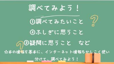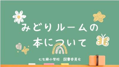 このスライドは図書委員の子供たちが担当の教員や司書の先生にアドバイスをもらいながら自分たちで作成していきました。七生緑小の探究学習がより豊かになる「みどりルーム」を今後も目指していきます。