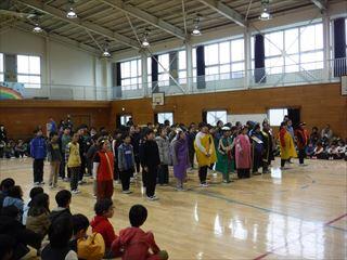 いつもは、体育館で全校児童が集まって歓迎しますが、今年は過密にならないよう、学年ごとにお祝いのメッセージを送りました。