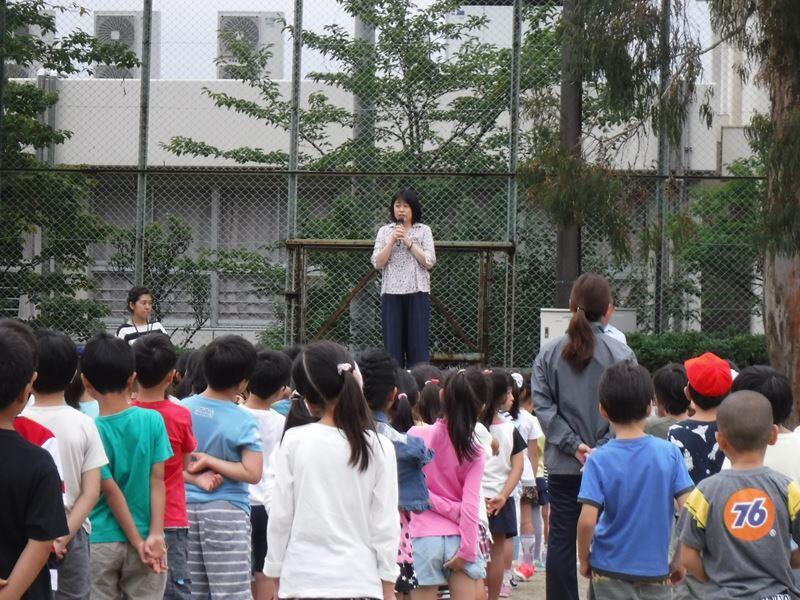 今朝の児童朝会では、副校長先生から教育目標のお話がありました。