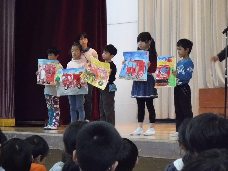 また、消防団の方が持ってきて下さったヘルメットやホースを触ってみたいという児童がたくさんおり、ますます消防団に対する興味が高まりました。