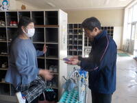八小に到着すると昇降口で船山校長をはじめ、先生方が出迎えてくれ、特にたちばな学級から来た子との再会を喜んでもらいました。また下駄箱に「なのはな」どの表示とスペースを準備してもらい、とてもあたたかく迎えて入れていただきました。
