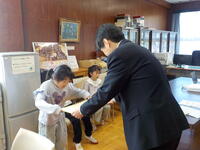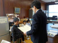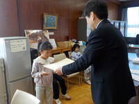 そして次に、今年の5月の「消防写生会」で東京消防庁より優秀賞、入選に選ばれた子の表彰を行いました。表彰後、子供たちに消防車を描いたときのポイントや工夫を聞いてみました。