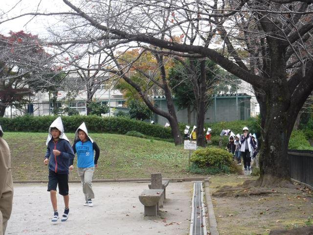 その後、火の手が追っているという想定で学校の隣にある百草台自然公園へ避難しました。