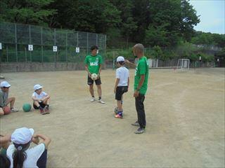 5年生の3クラスを対象に行いました。東京ヴェルディから普及担当コーチの方2名が来校しました。