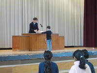 1年生となのはな学級の子供が発表し、今年1年間で勉強や生活でがんばったこと、なのはな学級での楽しい出来事などを堂々と発表することができました。