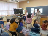 「どんな勉強が楽しみ?」→園児が「理科」と言うと、「理科は3年生からだね。」と優しくアドバイス。
