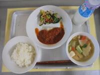 献立名:ご飯、鱈のトマトソースかけ、胡麻あえ、具沢山味噌汁、牛乳