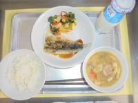 献立名:麦ごはん、鰯の蒲焼き、白菜のお浸し、鬼除け汁、牛乳