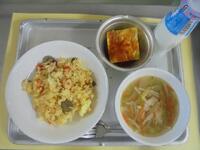 献立名:パエリア、スパニッシュオムレツ、ジュリエンヌスープ、牛乳