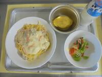 献立名:スパゲティクリームソース、コールスローサラダ、スイートポテト、牛乳
