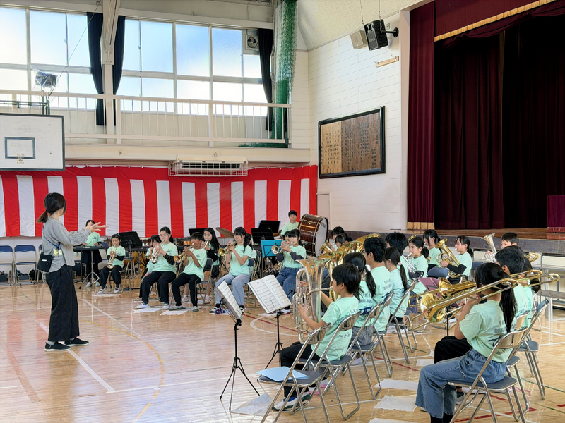 金管バンド令和7年度の集大成。音楽集会で演奏を披露しました。曲は、「アンパンマーチ」「RPG」でした。小ネタも入れてみんな楽しく鑑賞できました。6年生はこれで卒隊です。この演奏を見て、来年度はきっとたくさんの入隊部員が増えることでしょう。