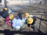2月19日(木)の昼休みに環境委員会主催の芝生管理体験をしました。道具の紹介や抜けるんです!という道具を使ったおおばこ抜き、落ち葉拾いに1年生が参加していました。「6年生に教えてもらって、面白かった。」「たくさんとれた。」と話していました。
