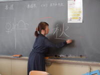 子供たちは,全校の教職員に見られながらの授業で,緊張しながらも担任の鶴田智美教諭の問い掛けにのびのびと自分の意見を発表していました。