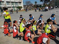 今年度は、校庭で練習している地域のスポーツチームに加え、さかえまち児童館による遊びコーナーや、消防署の皆様による起震車体験・初期消火体験、ひのベーゴマクラブによるベーゴマ体験、先生方による体力テストコーナー、おちかわ屋さんによる軽食販売等、たくさんのコーナーがあり、児童は様々な体験を行うことができました。