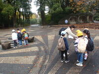 秋の公園で、どんぐりをたくさん見つけました!ビニル袋がパンパンになるまで拾っている子も多かったです。