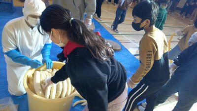 子供たちも自分たちが作ったたくあんが食べられるのを楽しみにしています。