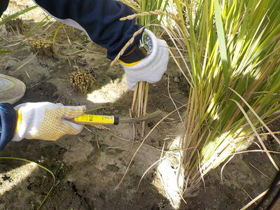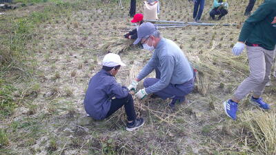刈った稲や脱穀した苗を束ねる等、大変な作業をお手伝いいただき、ありがとうございました。