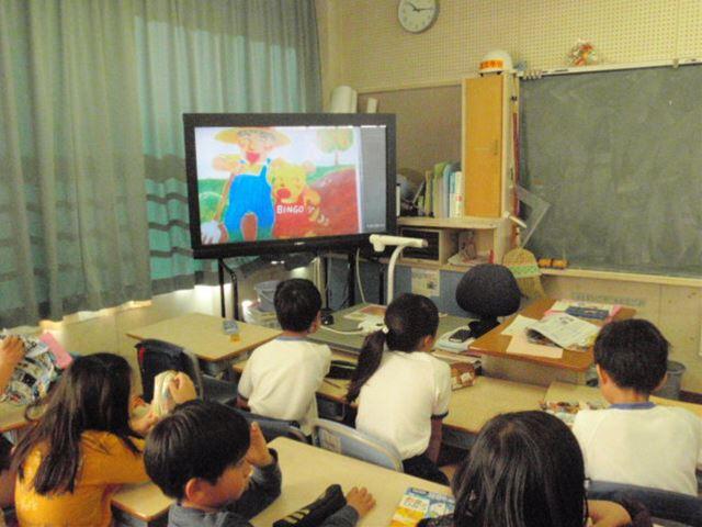 おはじきを使って友達とあいさつをするゲームや、音楽に合わせて体を動かすゲームなど、楽しく活動しながら英語に親しむことができました。