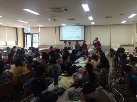 教室で、日本の古来の文様や日本の食文化についてのお話を聞いたあと、