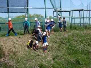 本日、1年生と2年生で東光寺グラウンドによもぎ摘みに行ってきました。