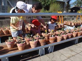 苗の植え付けをしてから2週間。みんなでお世話をしています。
