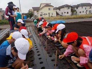 手際よく作業してくれた6年生。雨が降り出す前に作業を終えることができました。元気に育ってくれるといいな。