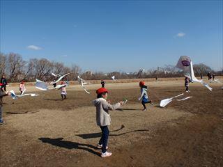 1月29日(火)1年生は図工の時間に自分たちで作り、デザインした凧をあげに、東光寺グランドに出かけました。お天気も良く、凧あげには最高の日でした。ちょっと風が強く吹くこともありましたが、子供たちはしっかりと糸を握って、凧を上手に風にのせていました。どの子たちも皆、とても満足した表情をしていました。