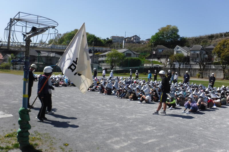今年度最初の避難訓練、地震が起こり、理科室が火事になったことを想定しての訓練でした。入学したての1年生もしっかりと避難することができました。