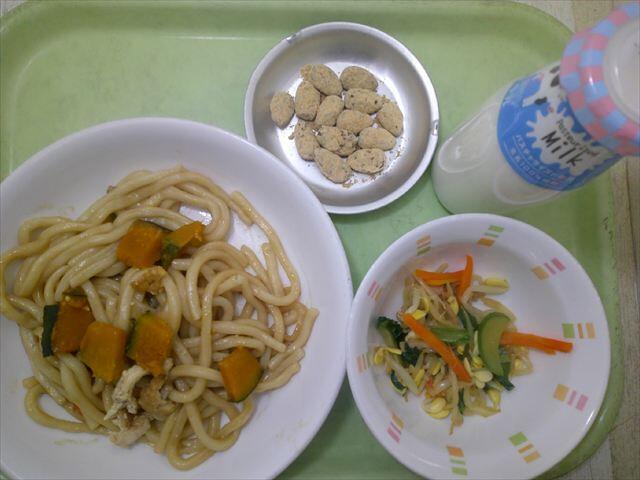 日野野菜たっぷり!かぼちゃとコリコリたくあん焼きうどん