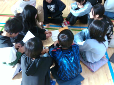 本日(1月9日)、5・6年の子供たちが体育館に集まり、「たてわり班引継ぎ式」を行いました。