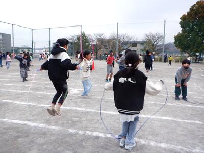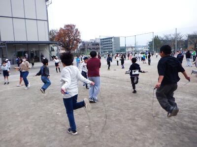 子供たちは、縄跳び週間で「縄跳びマスター」を目指します。