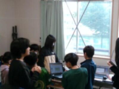 高所作業も教職員が行いました。6年生の子供たちが作成したプログラムをネットに掲示しました。