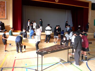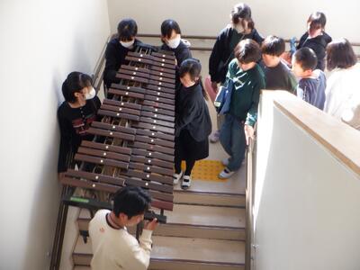 連合音楽会に向けた準備が、本格化してきました。本日(11月14日)、連合音楽会で使用する楽器を東校舎3階にある音楽室から体育館に運搬をしました。